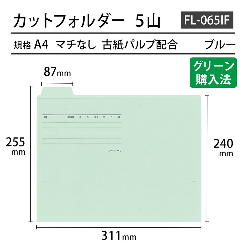 PLUS(プラス) カットフォルダー A4横マチなし 5山 FL-065IF 87-385 ブルー