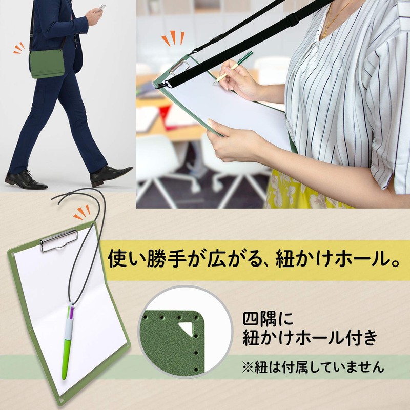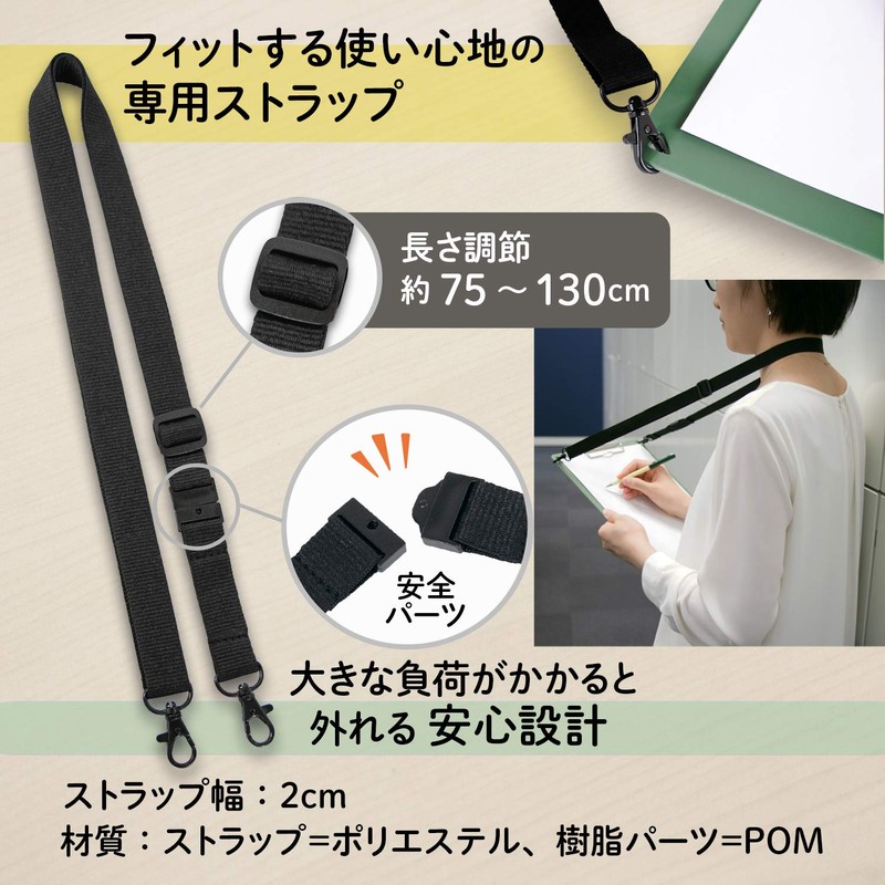- By attaching it to the folding clipboard, you can hang it from your neck as well as hang it on your shoulder or across your body