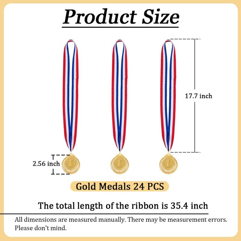 - [What You Get] - This product contains 24 plus gold medals, each with a ribbon. This is perfect for large events or for having a stock of medals on hand for smaller competitions.