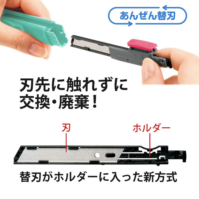 • Color: Pastel green; Material: Body/Cap: Recycled ABS, Holder: Recycled POM, Blade: Stainless steel