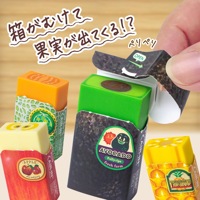 - The second release of the long-selling eraser with the fruit design of Airin. Peel off the peels (sleeves) to reveal the realistic fruit, and then erase it to create a cute rounded fruit eraser!