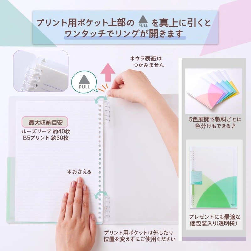 - [Size] B5 [Color] Muscat Green [Accessories] 5 loose leaf; [Maximum storage guidelines] about 40 loose leaf, about 30 B5 prints