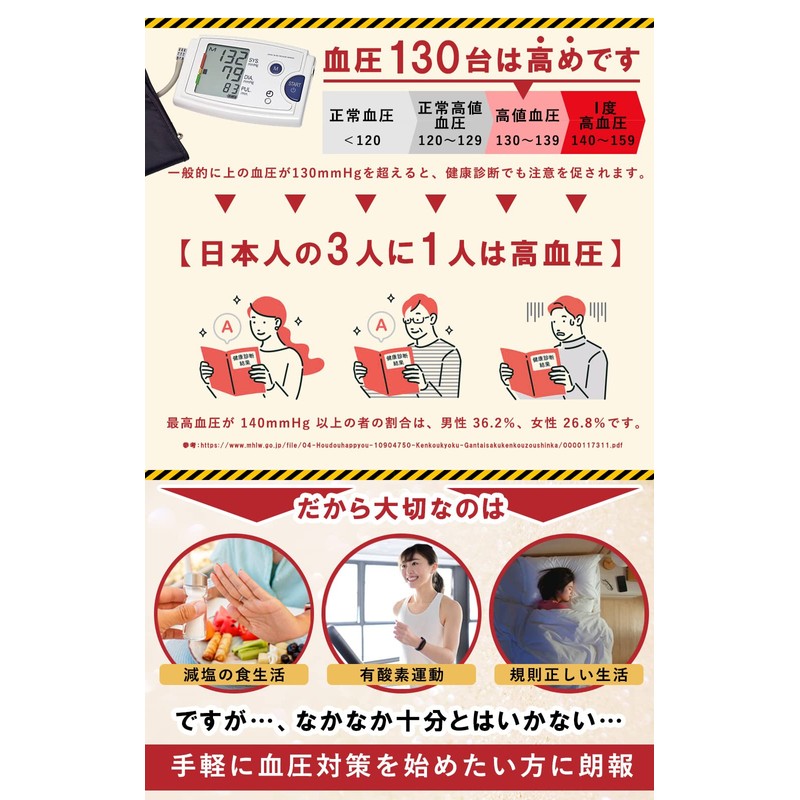 - ✅【このような方におすすめです】濃い味付けが好き/血圧が高めの方(130~139mmHg)