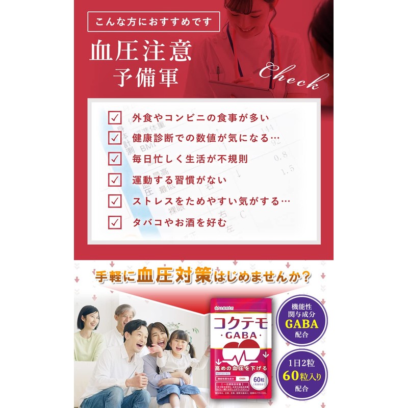 - ✅【届出表示】本品にはGABAが含まれます。GABAには血圧が高めの方の血圧を下げる機能があることが報告されています。
