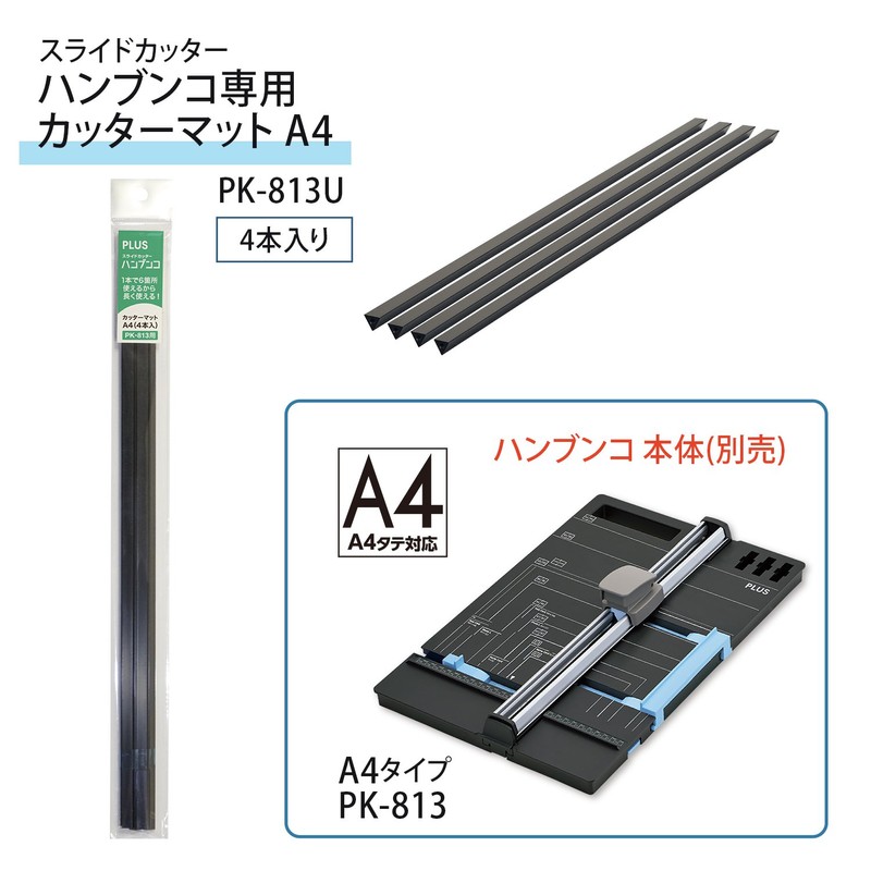 - Wゲージ搭載の裁断機『ハンブンコ PK-813』専用カッターマット(4本入り / 交換用)