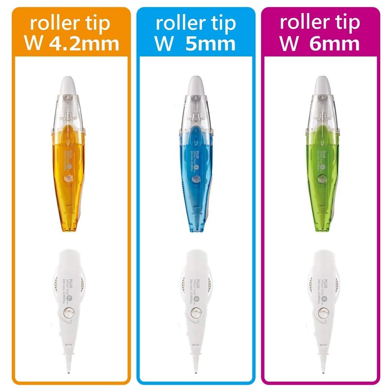 Plus PK Retractable & Refillable Mechanism Correction Tape White Out Pen Set 6/5/ 4mm x 6m with Clip easy to carry & 2 refills - Flat Tip or Roller TIp (Roller Tip 5mm Set (065L))
