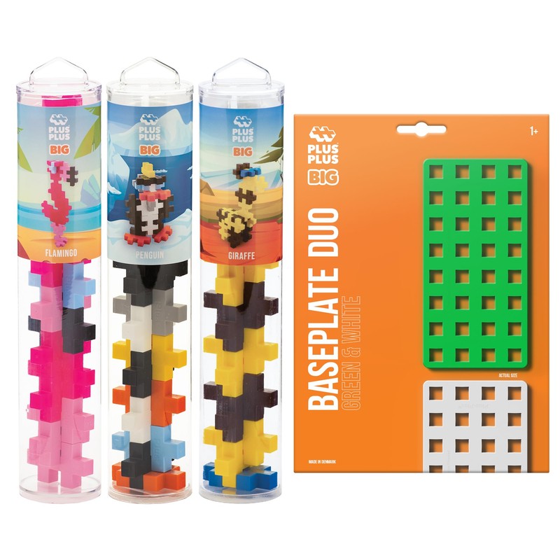 PLUS PLUS Big - Zoo Playset Bundle - 15 pc Penguin, Flamingo, Giraffe Tube & Baseplate Duo - Construction Building Stem/Steam Toy, Interlocking Large Puzzle Blocks for Toddlers and Preschool