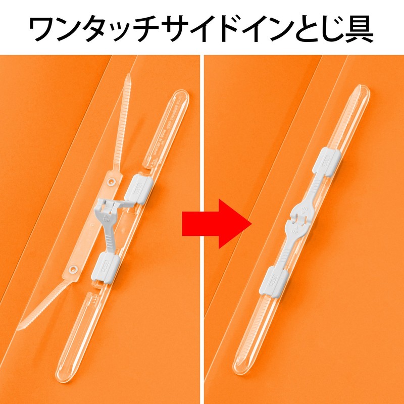 - One-touch side-in binding Labels on the back for easy organization