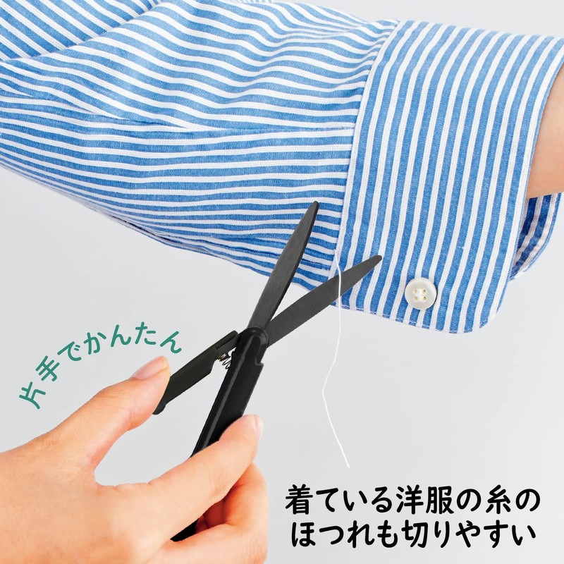 - This portable scissors combines all of the portability that does not add bulk, the sharpness of frayed threads, the operability that can be used quickly and easily, the blade length is indispensable for opening, and the fluorine coating that can also be cut off the adhesive tape