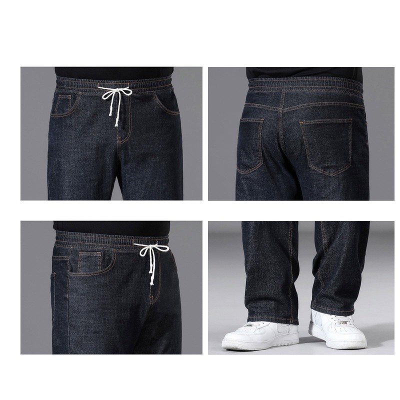 Plus Size Baggy Jeans for Men Elastic Waist Pull On Denim Pants Drawstring Straight Loose Jean Sweatpants L-5XL Black