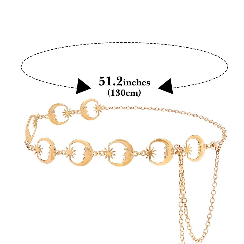 Plus Size Chain Belt for Women, 2 Pack Metal Chain Belt Women Belly Waist Chains, Extra Long Body Chain, 51.2 Inch Adjustable Chunky Belt Chain (Moon Style)