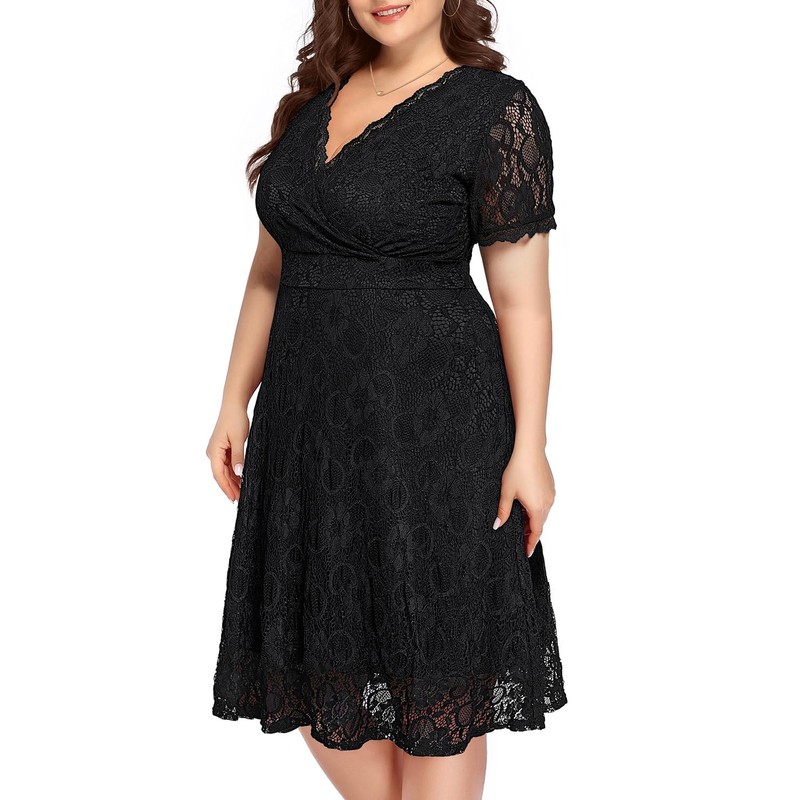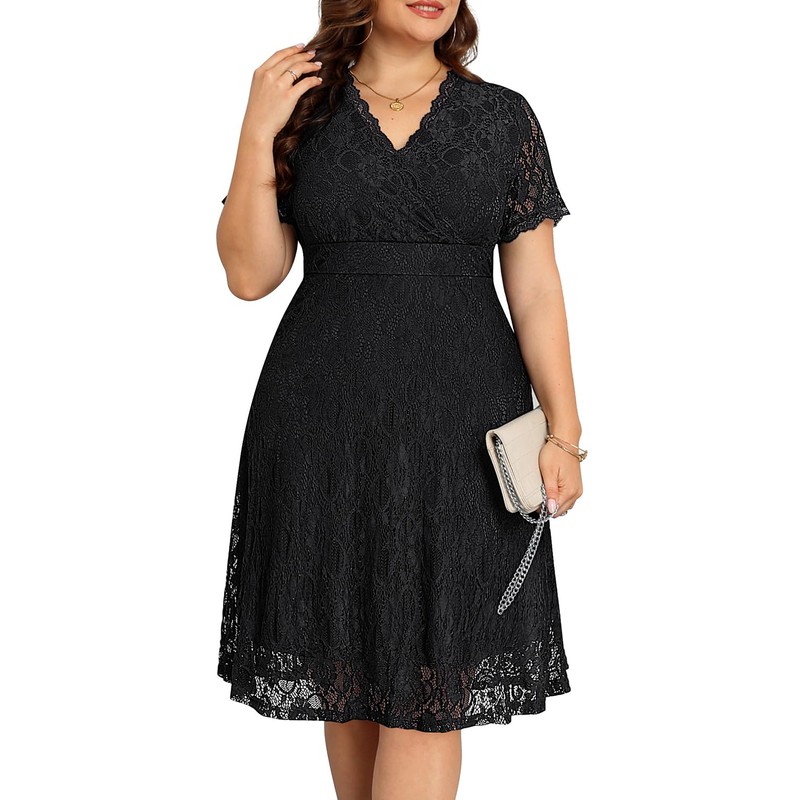 - ❤Features: Little black dress, floral lace dress, wrap v neck, short sleeve, knee length, high waist, tummy control, fit and flare style.