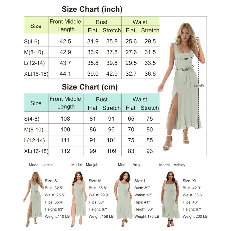 - Feature: Ladies Event Dresses designed with square neck, tie up straps, flowy ruffle slit midi skirt, smocked back with detachable sash, perfect for all maids or formal occasion, semi formal event etc