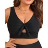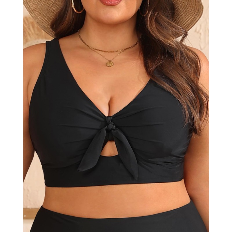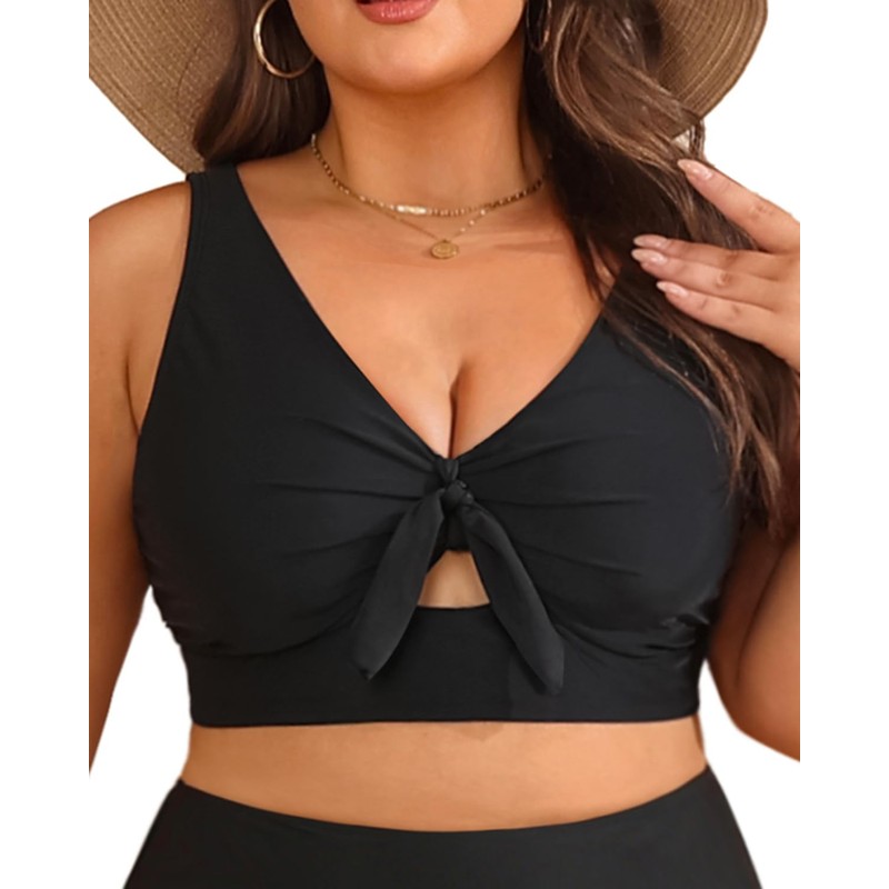 - Plus Size Black Swim Bra: Elevate your swimwear collection with our stylish plus size swim bra, featuring a chic front tie knot for added flair. Ideal for swimming, surfing, beach trips, tropical getaways, and yoga, this versatile piece pairs seamlessly with bikini bottoms, boyshorts, swim skirts, or swim pants.