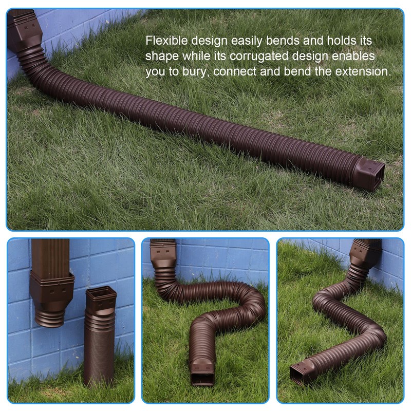 plusgutter Brown 2-Pack Rain Gutter Downspout Extensions Flexible, Drain Downspout Extender,Down Spout Drain Extender, Gutter Connector Rainwater Drainage,Extendable from 21 to 68 Inches
