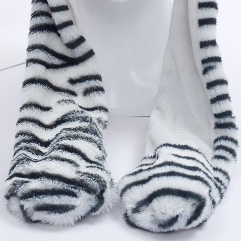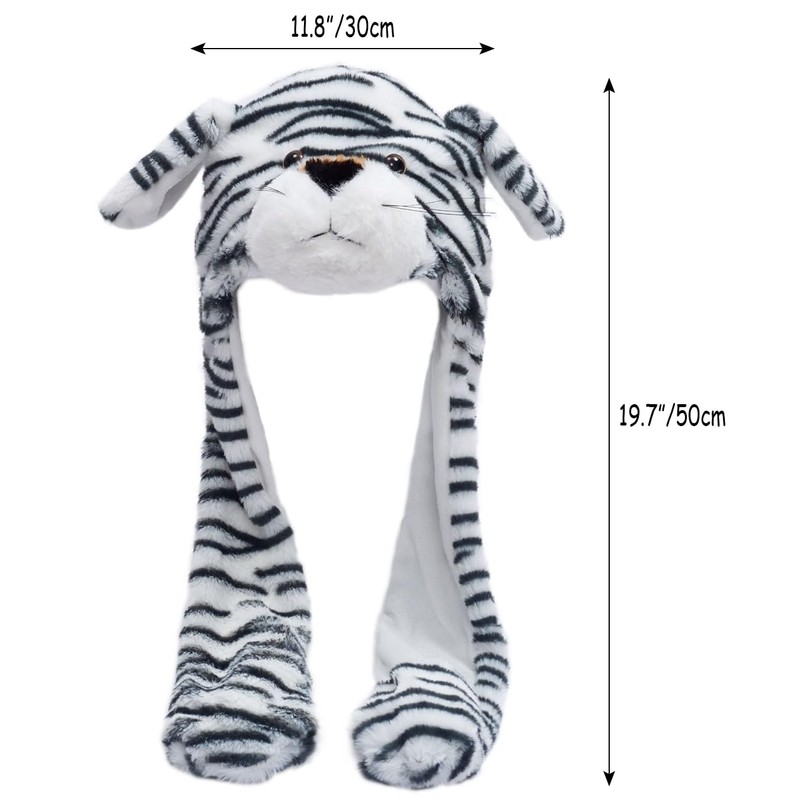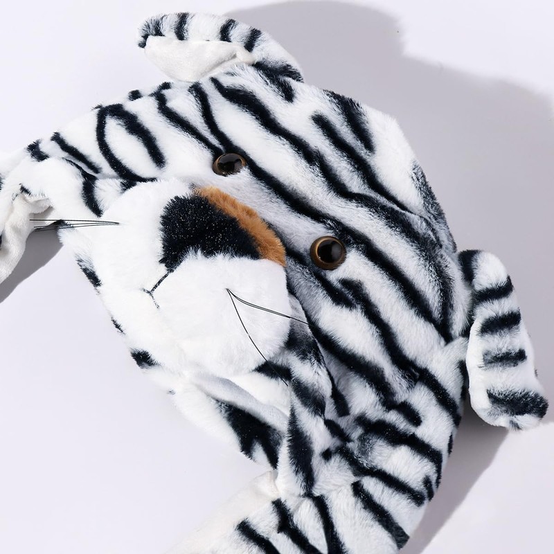 Plush Animal Ear Moving Jumping Hats Movable Dancing Ear Flap Hat Earflaps Movable Fluffy Cap(Tiger, Black and White)