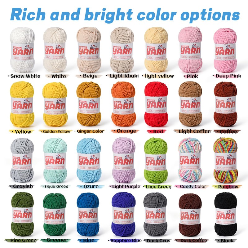- MULTIPLE COLORS: This stylish handmade yarn comes in a variety of colors for you to choose from, using advanced dyeing technology, the crochet yarn is not easy to fade and shedding, the color is long lasting bright and luxurious.