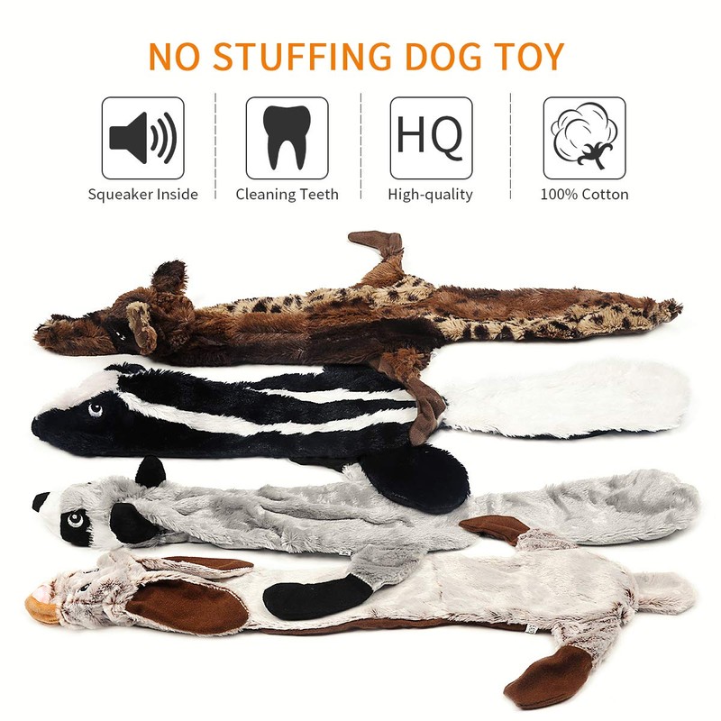 - ✅ Value Pack of 4 Dog Squeaky Toys : Including Rabbit, Bear, Wolf and Squirrel Plush Toys for Small, Medium and Large Breeds
