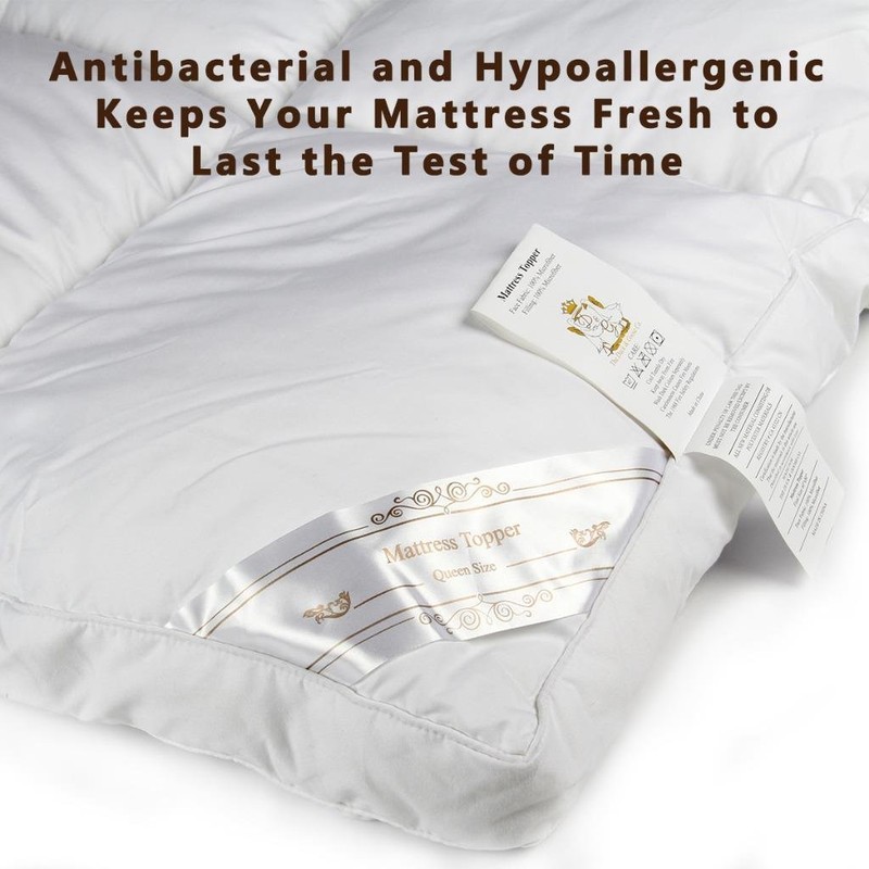 - *****BEST REPLACEMENT FOR MEMORY FOAM OR FEATHER-DOWN MATTRESS TOPPER: Featuring breathable down alternative gel-fiber filling and skin-friendly soft brushed polyester fabric, this mattress topper is a great solution for people who are sensitive to feather-down mattress toppers or suffering from the odors or the heat retaining of a memory foam mattress topper. No more sweaty night with a memory foam mattress topper.