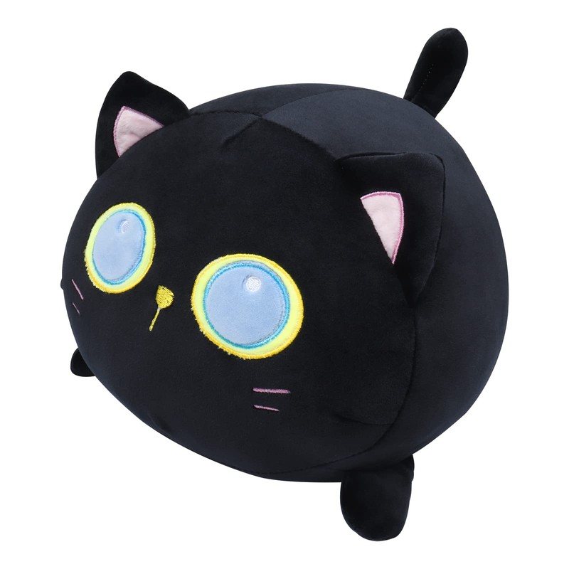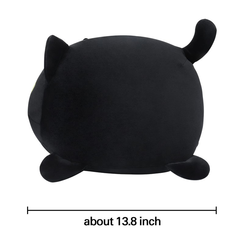 Plush Kitten Toy Cute Cat Plush Pillow, Kawaii Kitten Cushion Doll Soft Stuffed Animal Toy, Chubby Cat Fluffy Toy Plush Toy Soft Toys for Children Friends, Christmas Graduation Gift, Black, 13.8’’