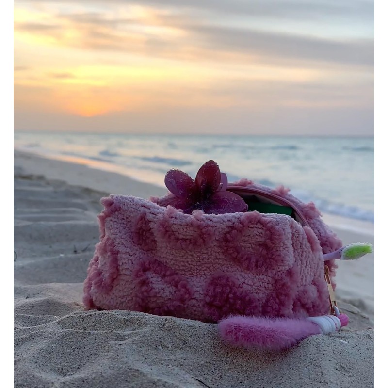 - PLUSH DESIGN: Soft and cosy pink teddy-like fabric exterior with textured pattern creates a charming and fashionable cosmetic storage solution