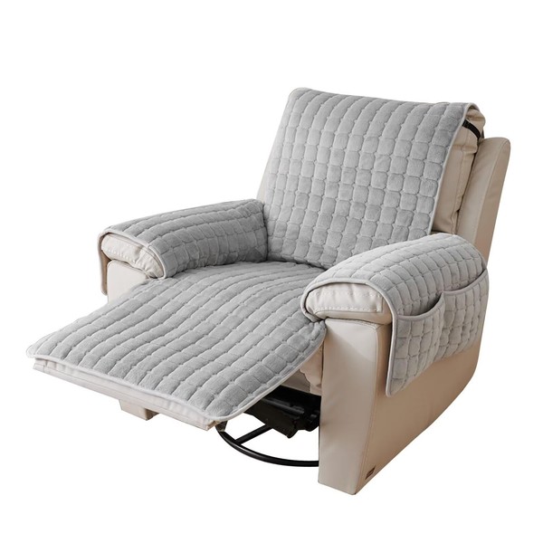 Plush Recliner Slipcover 23 Inches Washable Chair Covers Artificial Wool Lazy Boy Cover Quilted Cover for Recliner Chairs and Furniture,Large Taupe Chair Protector with Side Pocket for Kids/Pets