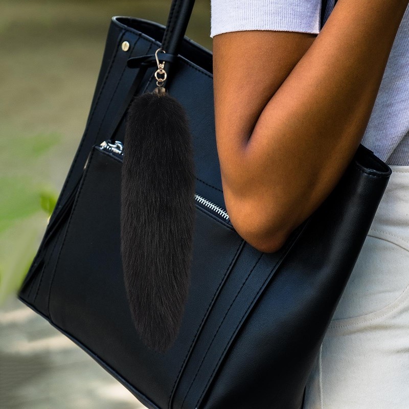 Plush Tail Keychain Pendant Faux Fur Tails Pendant Cute Keyring Pendant Car Bag Charm Pendant for Purse, Handbag, Key Chain, Wallet Accessories, Black