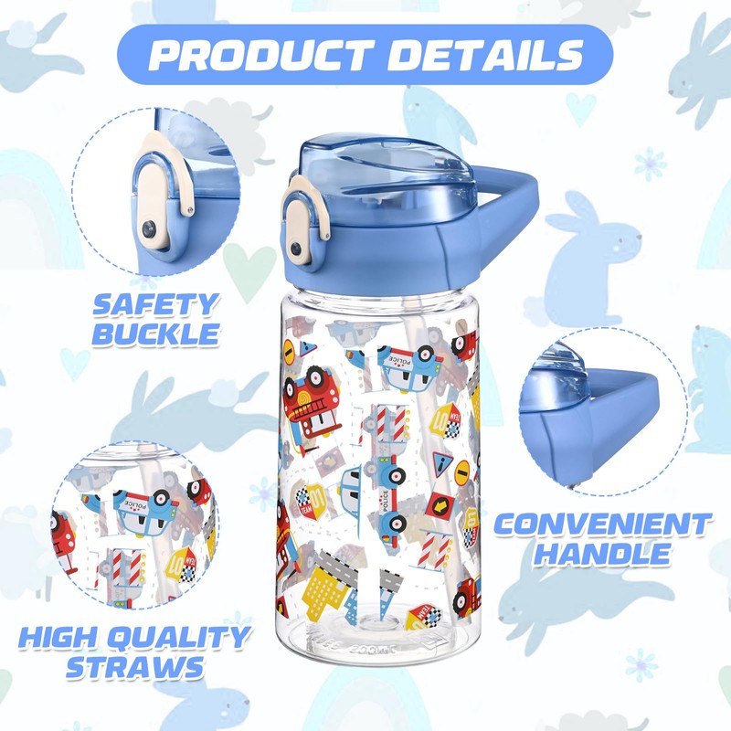PLUSHCEWT Kids Water Bottles 500 ml/17.6 oz Kids Water Bottle With Straw Leak Proof Toddler Drinks Bottle for School Easy to Open Secure Lock Children's Bottle BPA free Sport Bottle for Girls Boys (E)