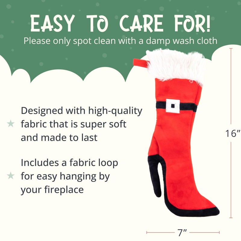 Plushible High Heeled Christmas Stocking - Santa Theme | Soft and Sturdy Christmas Decorations | Perfectly Holds a Bottle of Wine | Festive Decor for The Holidays