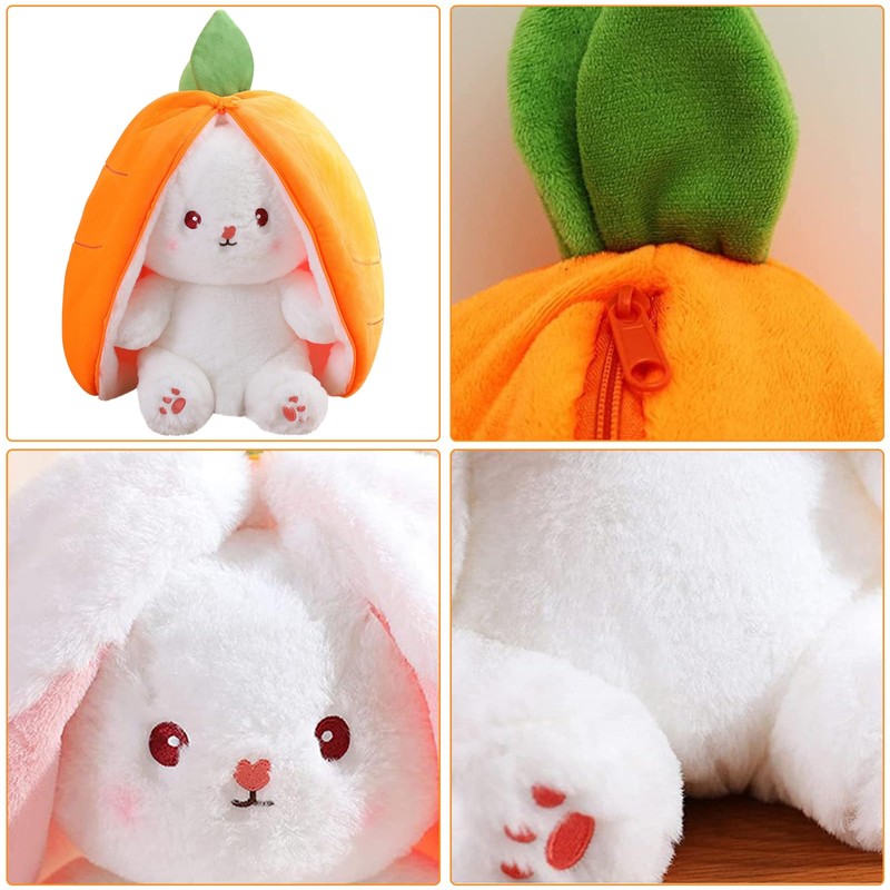 - 【Rabbit Transformation】 Just open the zipper, you can easily change from a strawberry to a little white rabbit, or from a carrot to a big white rabbit. It's the equivalent of owning two cute and fun stuffed animals. The rabbit plush is the pet plush toy that every boy and girl wants!