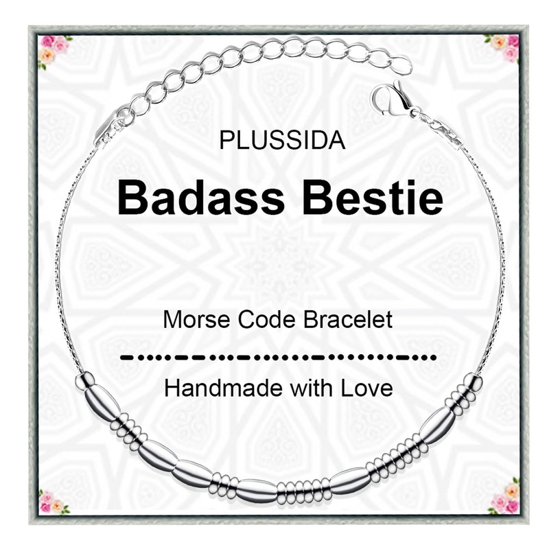 PLUSSIDA Stainless Steel Beaded Morse Code Bracelet, Unique Funny Inspirational Gifts for Men Women, Friendships Christmas Birthday Gifts for Best Friends Lover Sister Aunts (Bestie)