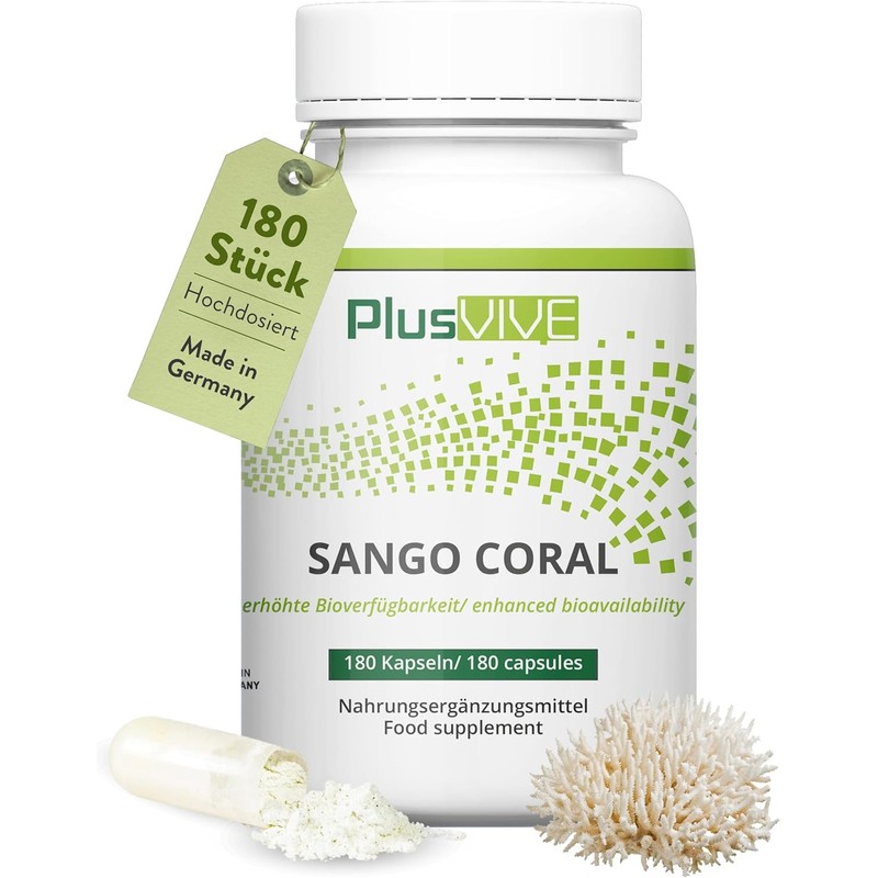 PlusVive - Sango coral capsules - high dose: 1100 mg Sango sea coral powder per capsule - with bioavailability matrix - 180 vegan capsules - made in Germany