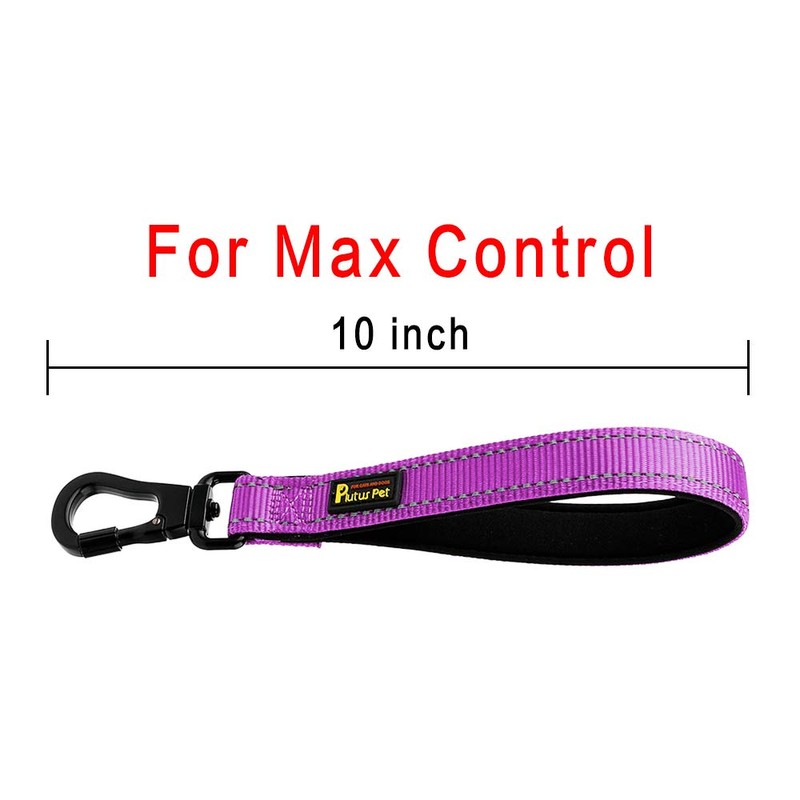 PLUTUS PET 10” Short Dog Leash, Reflective Nylon Padded Handle, Strong Traffic Leash with Carabiner Clip, Perfect for Large or Medium Dogs(10”,Purple