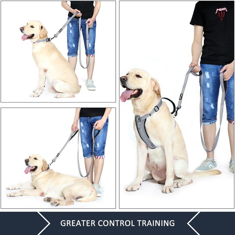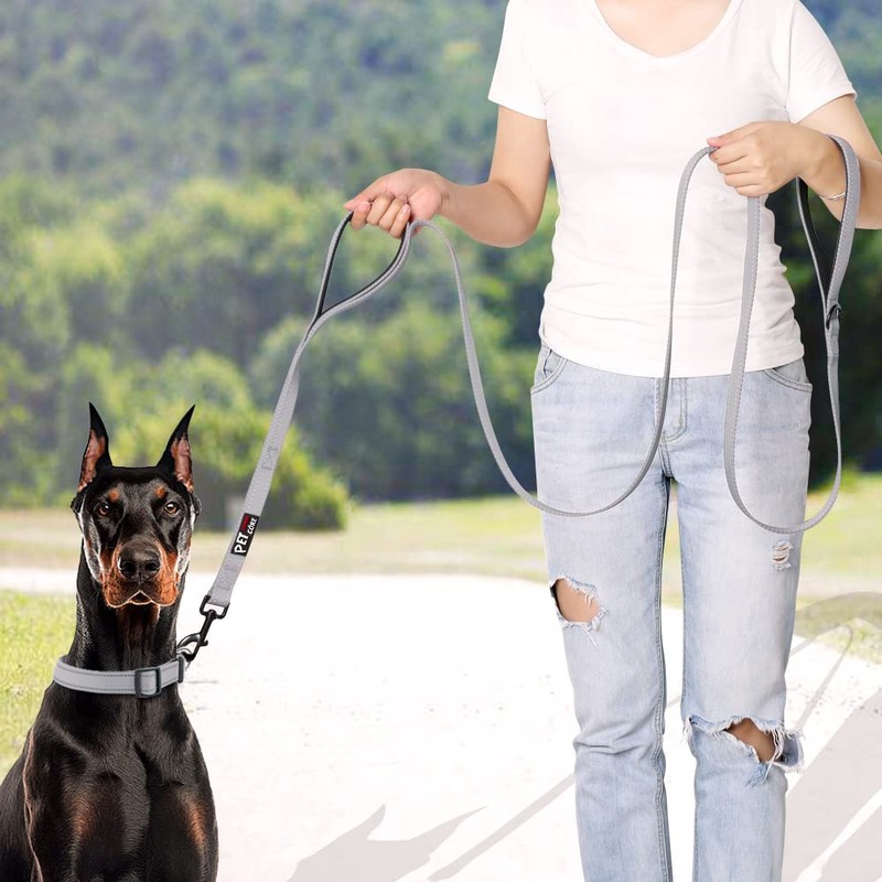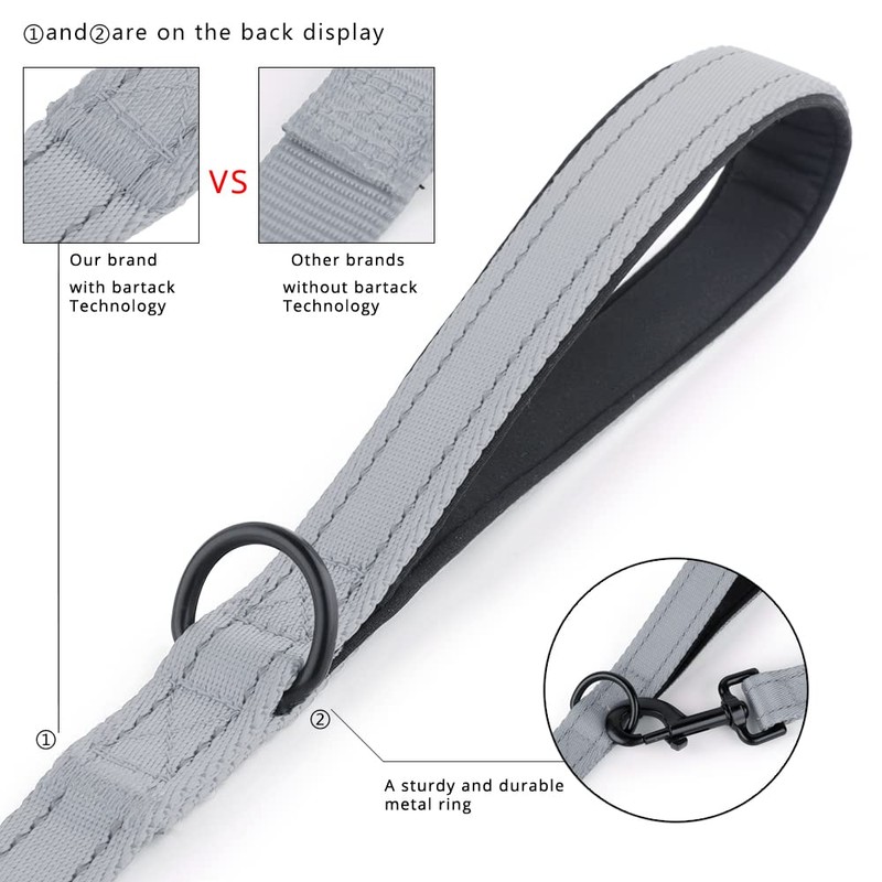 Plutus Pet Double Handle Dog Leash 6ft, Heavy Duty, Reflective Dual Handle Dog Leash for Safety Training, for Medium Large Dogs, 2 Handle Leads(Gray)