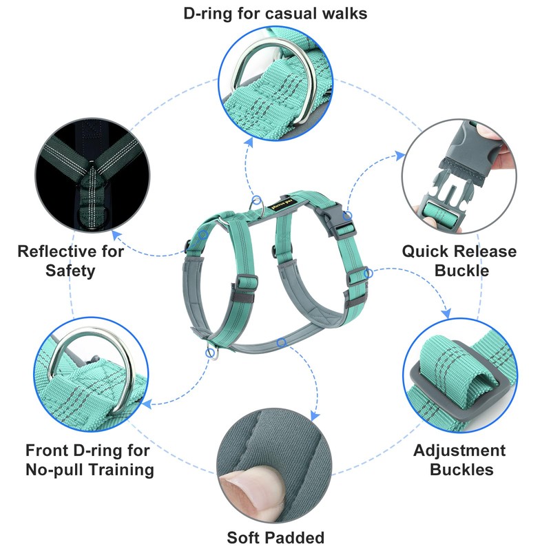 Plutus Pet No Pull Dog Harness, Adjustable Nylon Harness with Soft Padding, Reflective and Heavy Duty Dog Harness for Small, Medium, Large Dogs(Teal, XS)
