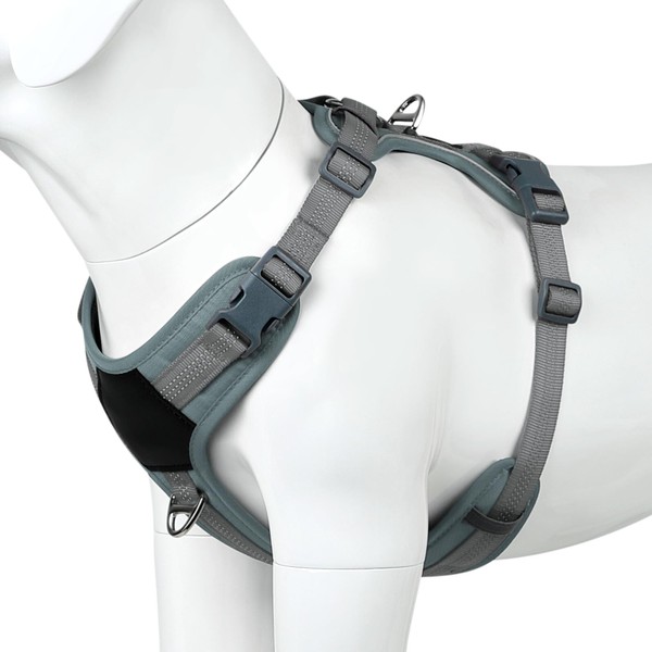 Plutus Pet No Pull Dog Harness, Release at Neck, Soft Padded, Reflective Adjustable Dog Vest Harness for Small, Medium, Large Dogs(Gray, L)