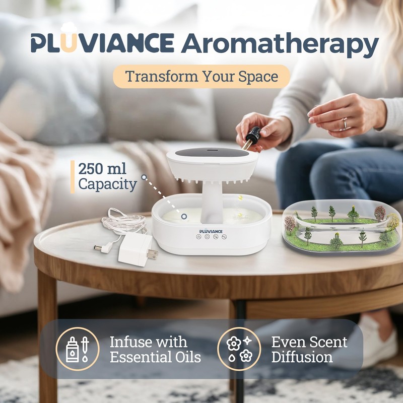 - ๐๐ฅ๐ข๐ ๐๐ง๐๐๐ฅ๐๐ฃ๐ฌ ๐ช๐๐๐๐ก๐๐ฆ๐ฆ Elevate your environment by adding your favorite essential oils to create a spa-like atmosphere. Pluviance rain humidifier water drip ensures even, long-lasting scent diffusion that helps relieve stress, and create personalized aromatherapy experiences.