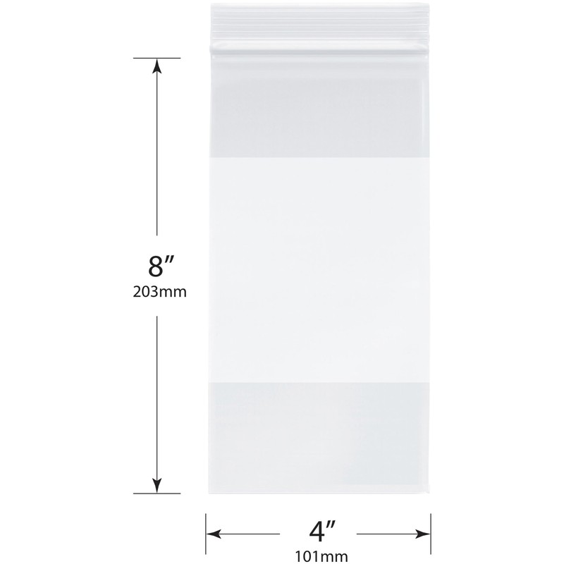 - BAG SIZE/STYLE: 4" wide x 8" high, below the zipper (101mm x 203mm), features white write-on block