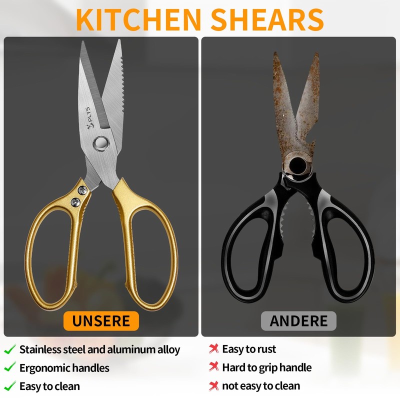 - [Perfect Gift]: Each product is independently tested to ensure the performance you expect. Every cooking enthusiast needs a practical pair of universal scissors. It's the perfect gift for the kitchen at Christmas, New Year or any occasion.