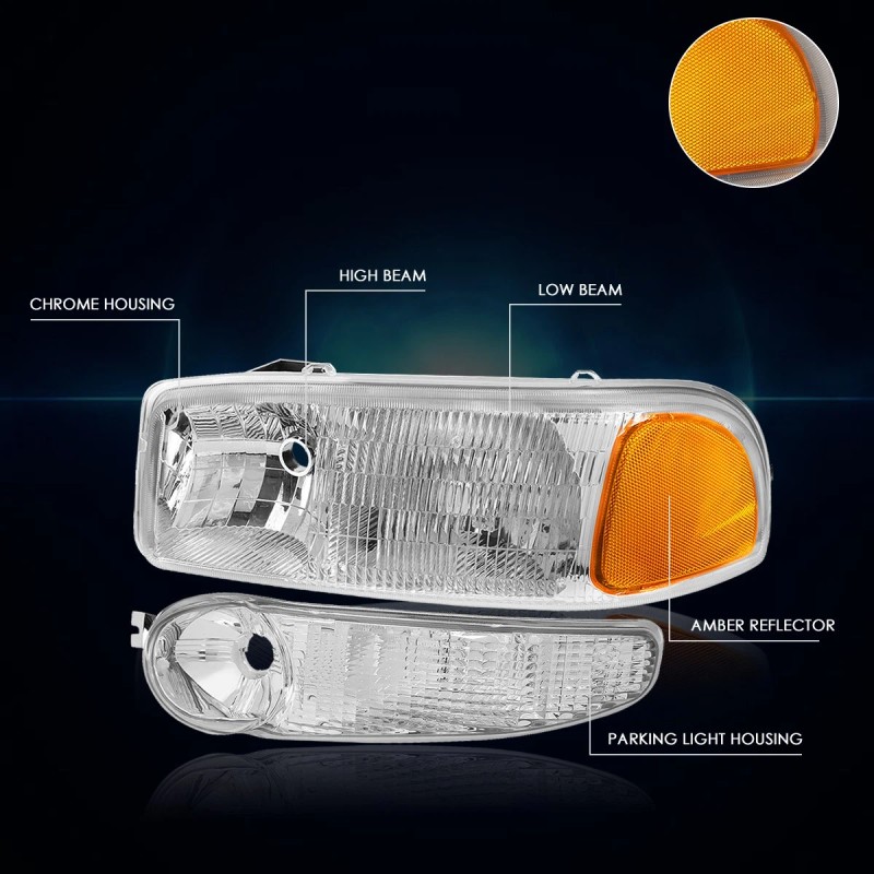 For 01-07 GMC Sierra/Yukon Denali Headlight/Lamps Chrome Housing Amber Corner
