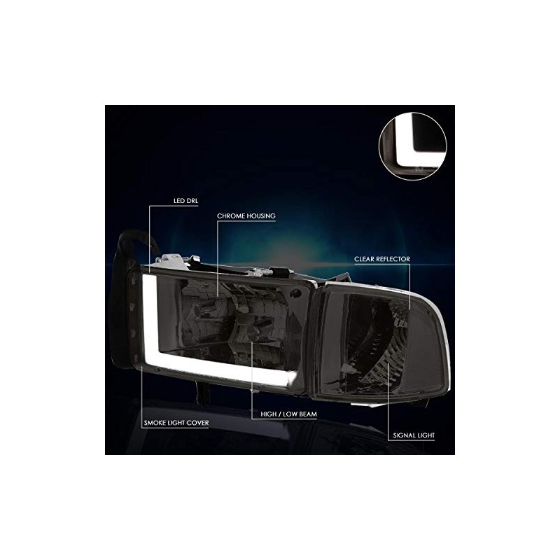 PM PERFORMOTOR Headlights Assembly Compatible with 1994-2002 Dodge Ram Pickup, Headlamps with LED DRL, Smoked Lens/Clear Corner