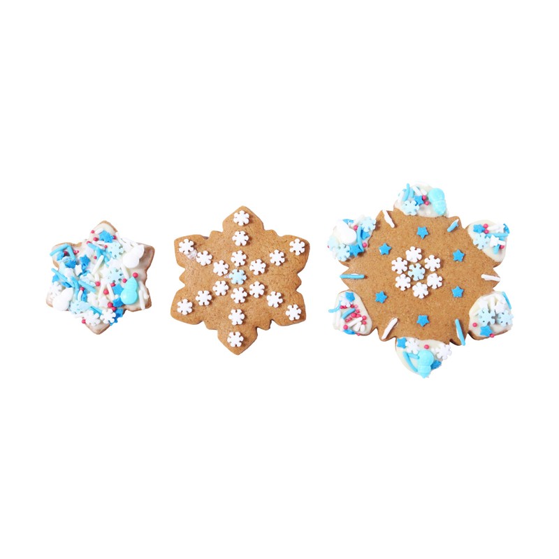 - 2.54oz sprinkles with a blue, white & red theme, featuring a blend of star confetti, snowmen, snowflakes, jumbo jimmies & more