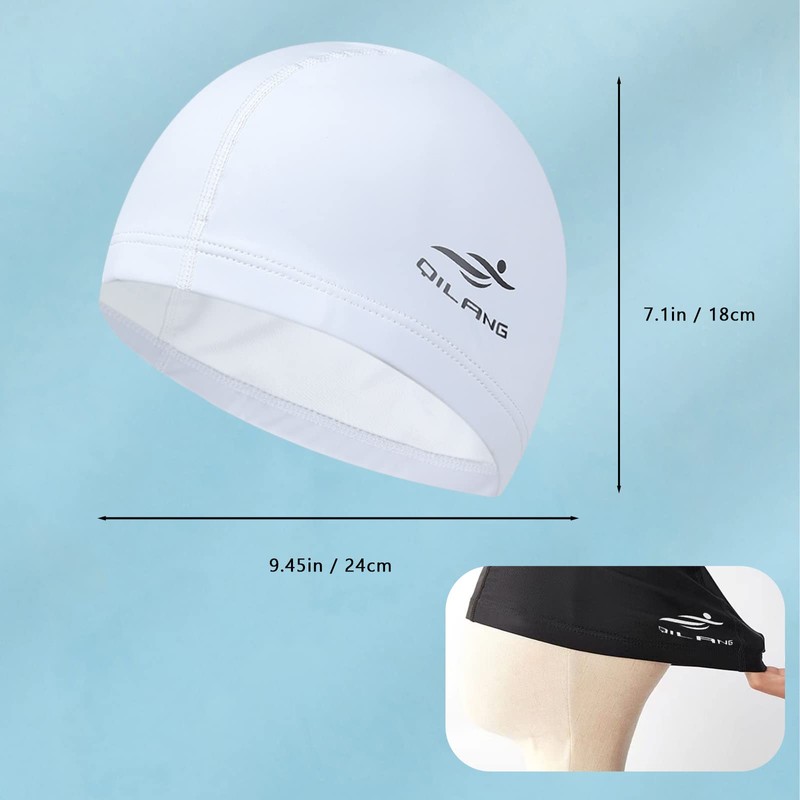 PMELCXD Swim Cap, Swimming Cap Man Women, Pure Color Nylon Spandex Fabric Comfortable and Not Tight, Bathing Swim Cap for Long and Short Hair(White)