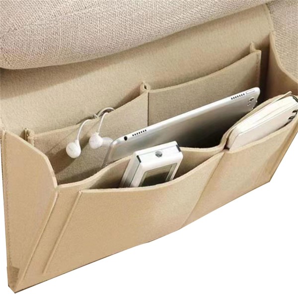 PmHaurient Bedside Caddy,Felt Bed Side Caddy Organizer With 5 Pockets For Remote,Bed Pockets Bedside Storage Can Hold Tablet Magazine Book Phone And Fruit,For Bed,Sofa,Desk (beige)