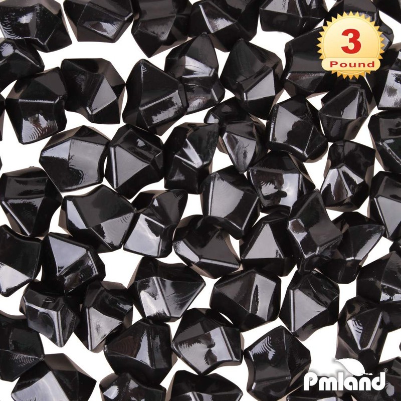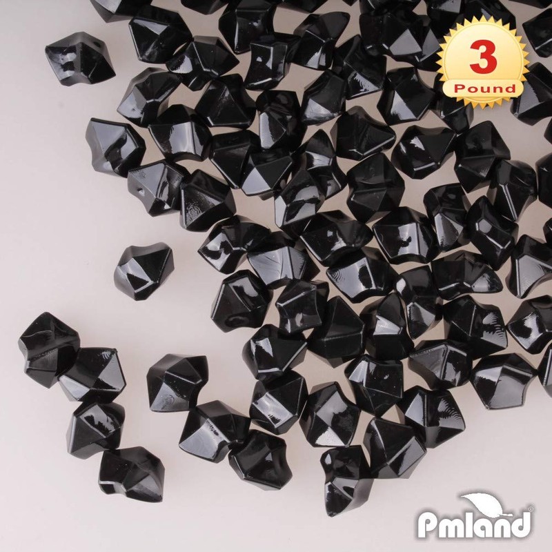 The black diamond gems add a glamorous look to any indoor or outdoor decorations, home and office, with even the most simple things. High quality luxurious brilliance with the appearance of real diamonds! It gives the perfect picuture-worthy effect on the display decoration, especially for the food showcase display in cake, coffee shop and restaurant, stimulate people’s shopping desire. Perfect for filling up a vase or scattering a few around some candles! The appearance of these acrylic diamonds will give your parties the perfect fairy tale vision. Like rhinestones, they can be used at themed birthday parties, graduations, anniversaries, holidays, bridal decorations, and winter seasonal decor! Widely implemented in in christmas tree decor, art crafts projects, scavenger treasure hunts, home decorations, and used by interior designers to event planners. These elegant ice rocks are the perfect addition to your arts & crafts tool box. Perfect for scrapbooking, decorating pictures; making DIY hair accessories. Suitable for handmade accessories like personalized ornaments and can also be combine with water beads to make floral designs.You will love the quality and plenty of pieces each package offers to let you idea take off! **PMLAND Brand Philosophy** PMLAND values our customers by keeping YOUR shopping concerns in mind, therefore, we deliver products with our best: **CREATIVITY** for your convenient use and fun experience **QUALITY** by using durable materials, delivering best-in-industry design and monitoring on manufacturing/packaging control **SUSTAINABILITY** by supplying environment-sustainable, family-friendly, safe and healthy choices. We take great pride in the products we supply, that's why we offer a 100% Satisfaction Guarantee. **NOTICE:** PMLAND is a registered trademark with the USPTO in USA. Make sure you are only purchasing from PMLAND to avoid any product quality problems.