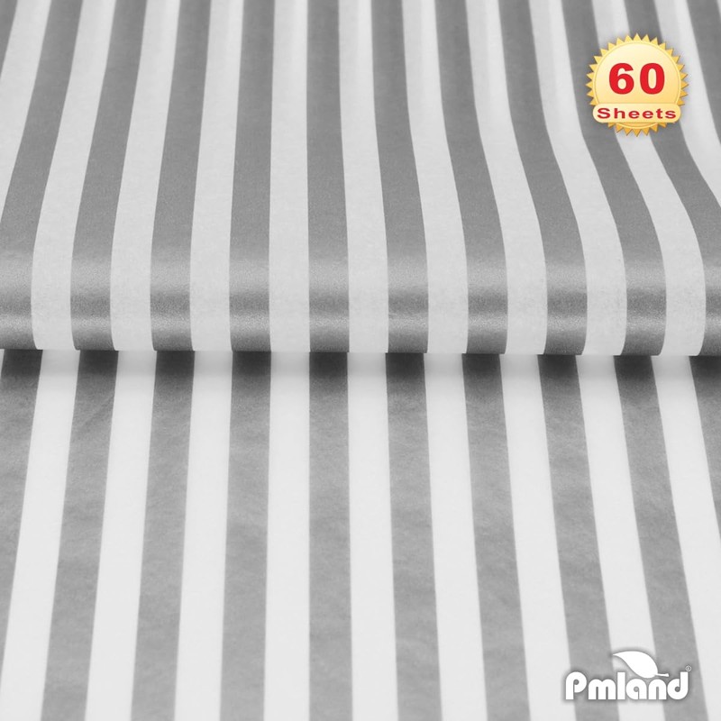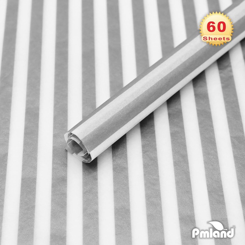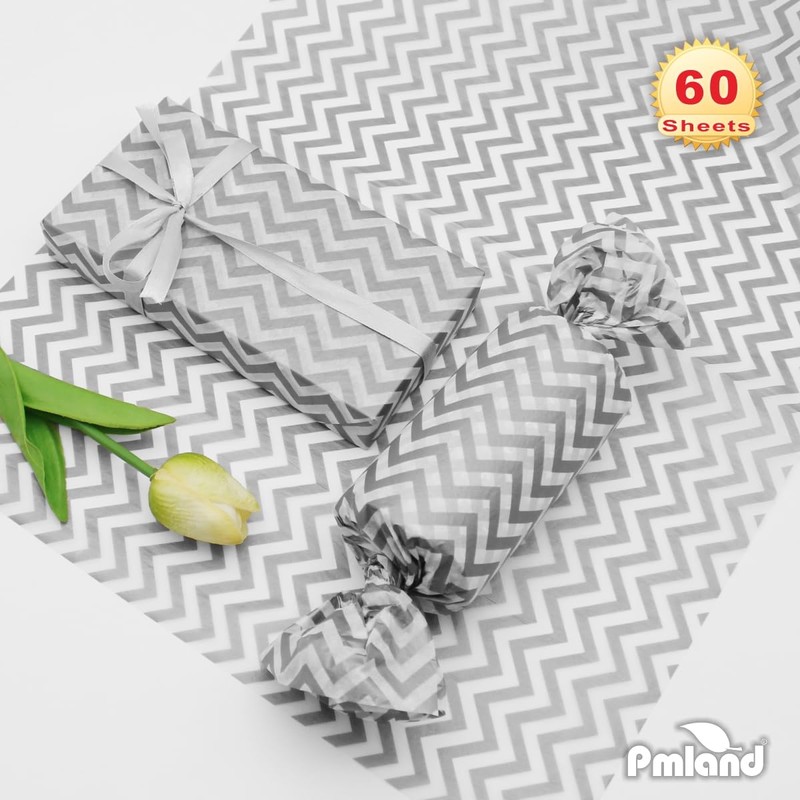 PMLAND Premium Gift Wrapping Tissue Paper - White Metallic Silver Zigzag - 20 x 14 Inches - 60 Sheets