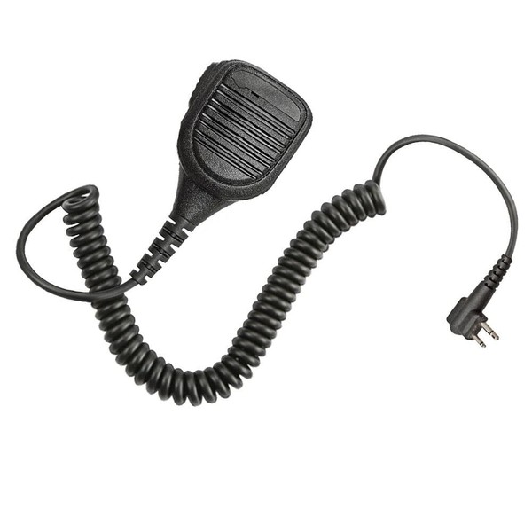 - Clip-on 2 pin speaker mic combined with PTT (Push to Talk) button.