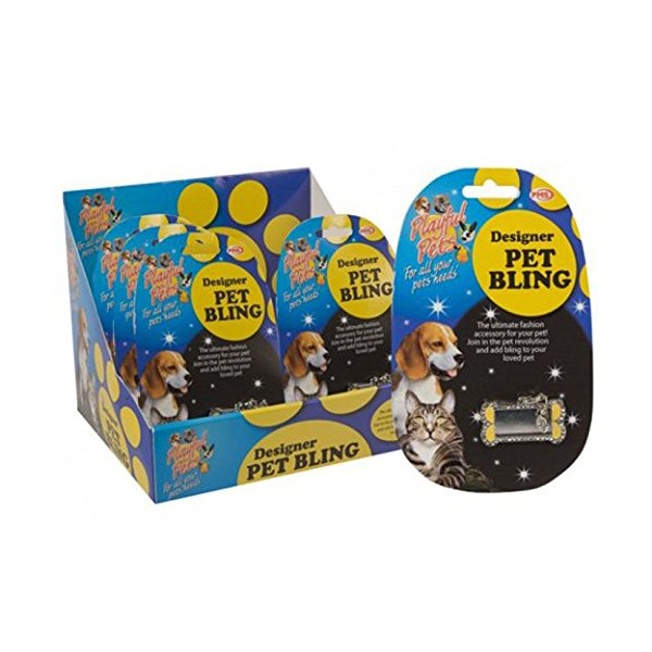 PMS DOG BONE SHAPE BLING PET ID TAG ON SPRING CLIP 36 PDQ