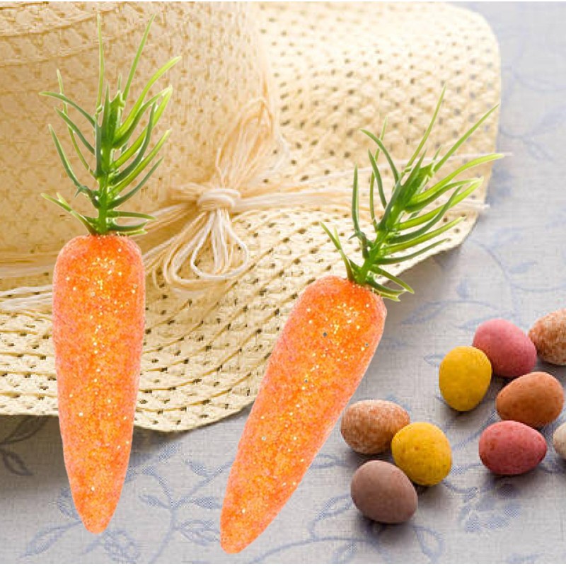 PMS Set of 12 Glitter Carrots 5cm+ Easter Bunny Egg Hunt Bonnet Decoration