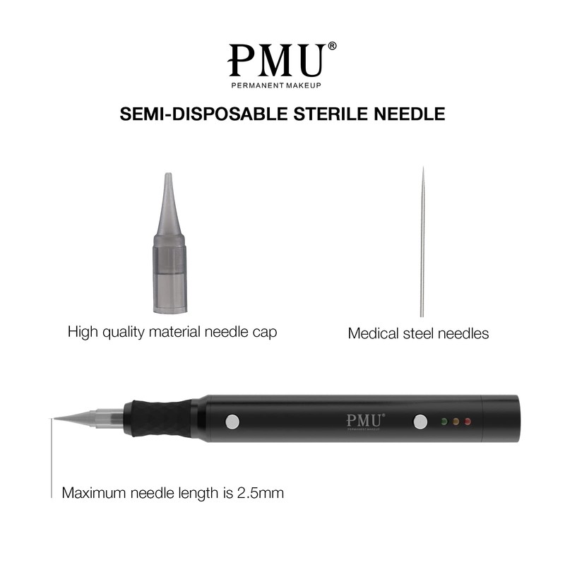 - Semi-permanent tattoo machine: a lightweight machine pen with ergonomic design that mimics the grip and comfort feeling of a real pen. The silicone design has an anti-slip function. This pmu machine is perfect for beginners and professional artists.